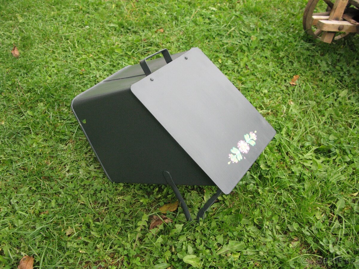 Uhlák je po renovaci, tj. odstranění původní oprýskané barvy, odrezení, vybroušení, natření kovářskou barvou v šedočerném odstínu. Je bez poškození. Pouze v místech uchycení víka, horní okraj, viz. fotografie je malé prohnutí. Jen osobní převzetí. Prosím o komunikaci přes web Bazoš.cz.