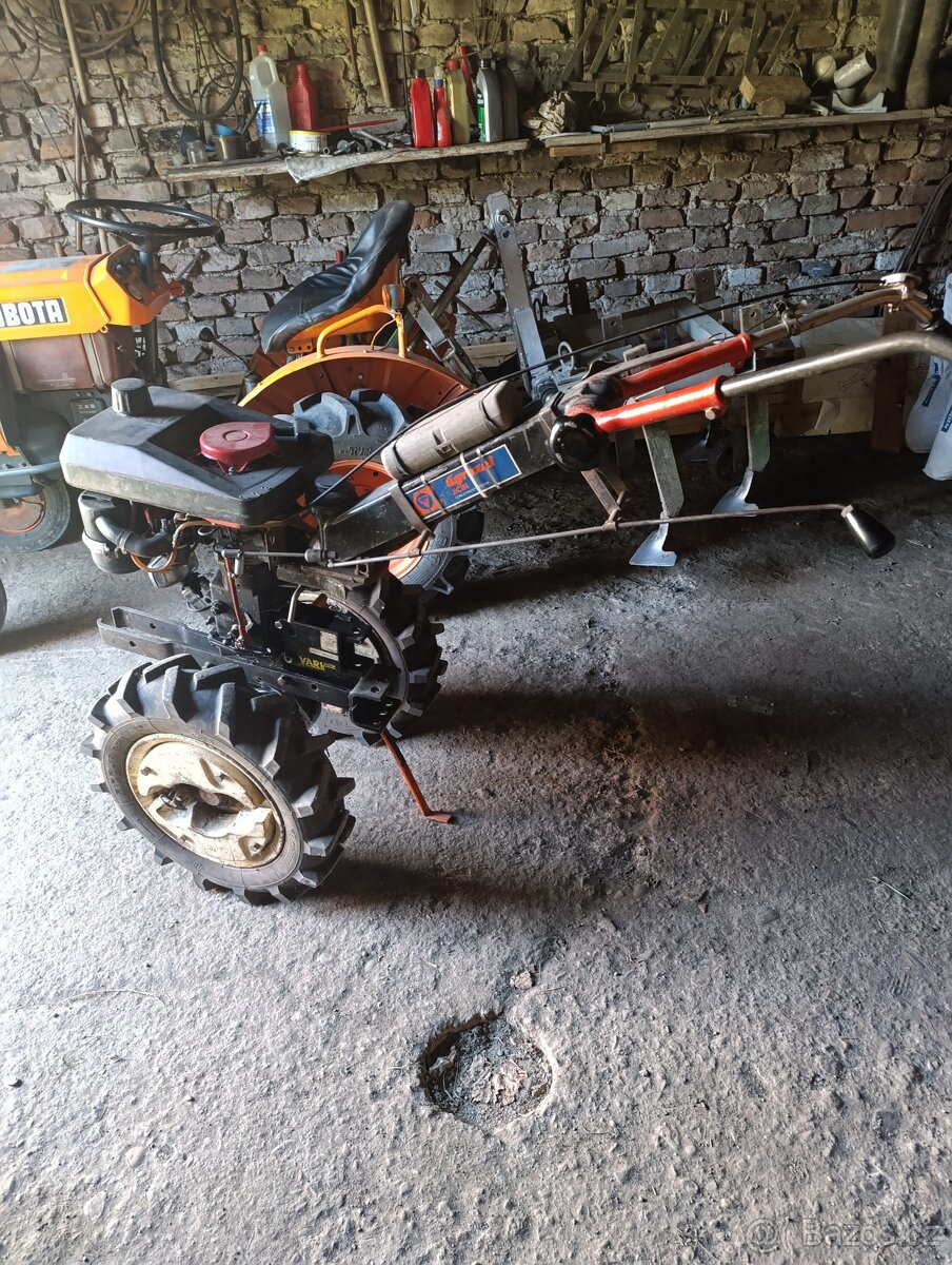 Prodám VARI s nářadím.Na motoru dán nový karburátor,válec,pist,kroužky,čep,hlava.Nářadí,rotavátor s převodovkou,přídavné nože,4x středové tyče,kryty,nastavovací těleso,radličková plečka,pluh,hrobkovač,brána,závěsy,nosiče, závaží velké,3x malé,stojan,komplet náhradní výbrus.(vše není na foto)
