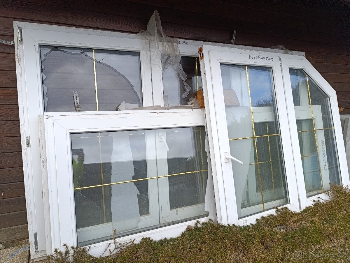 3.Trojokno: 180x139 (142 podesta)cm - zde je 1 tabule prasklá z vnitřní strany - sleva, lze opravit.