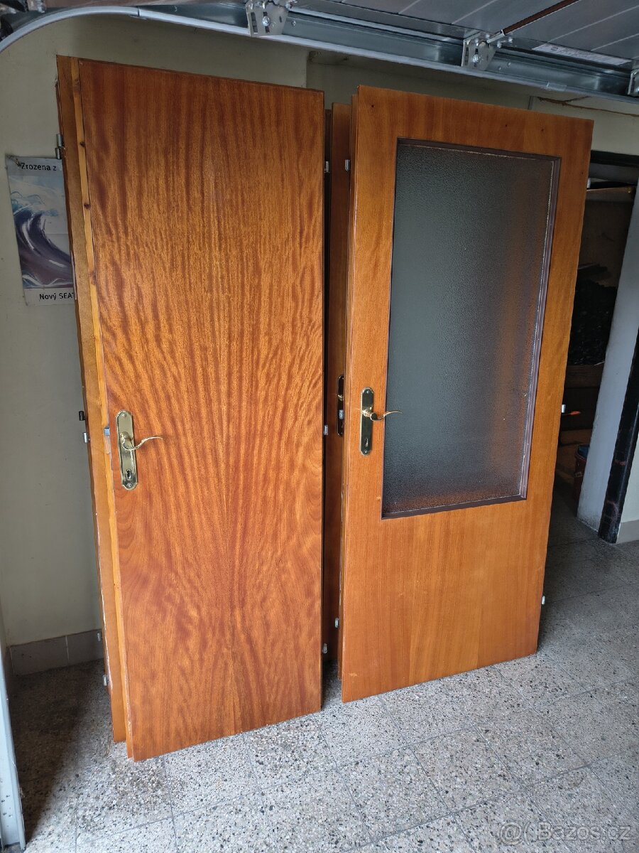 Nabízím dýhované dveře 80 pravé 3ks, levé 2ks, 60 levé 3ks pravé 1ks. Cena 100kc kus.