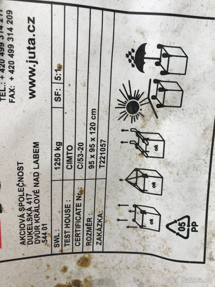 BIG BAG jednou použité. U výsypky spodní části díra cca 5x5cm. Vhodné na dřevo,suť atd.cca 20 ks,