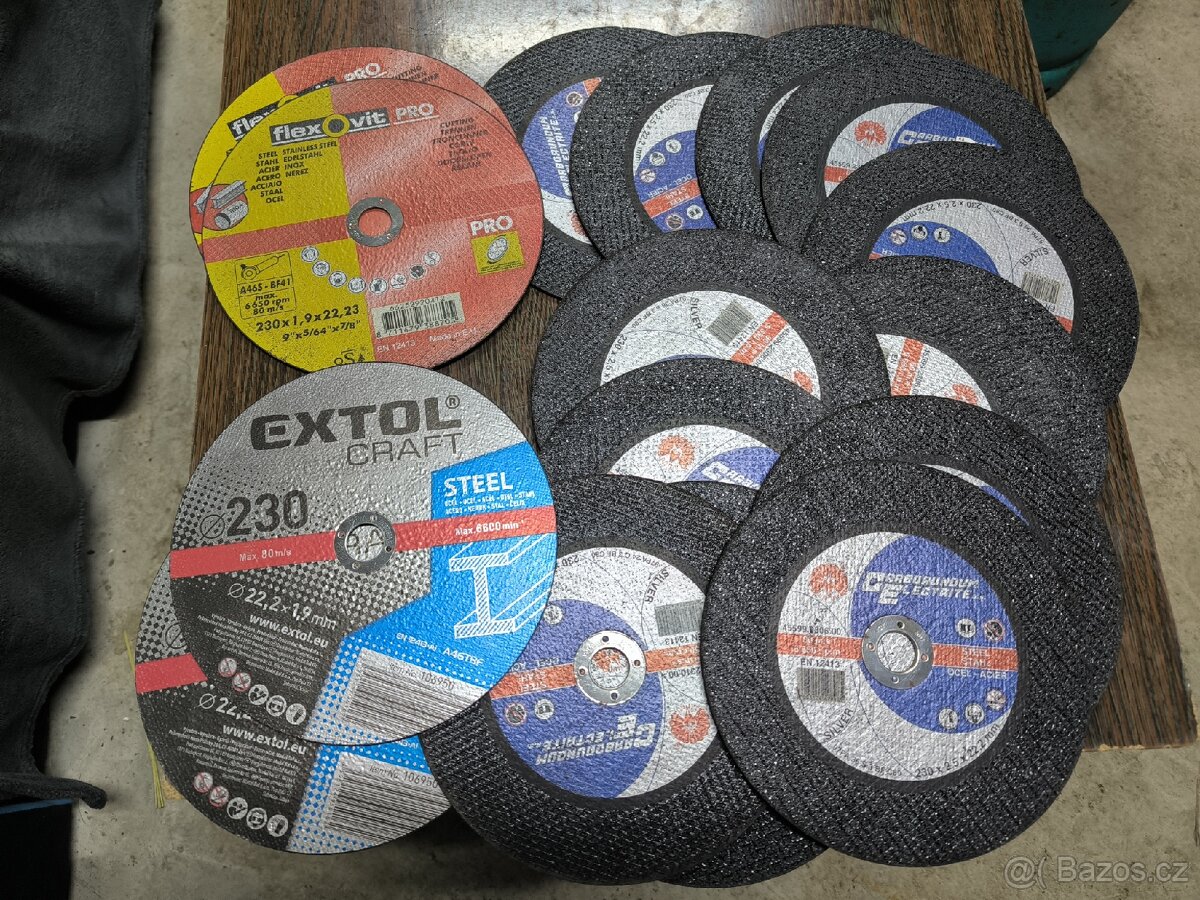 Řezné kotouče průměr 230,180mm. Celkem 28ks.3ks brusných kotoučů o tl.6.5 a 10mm