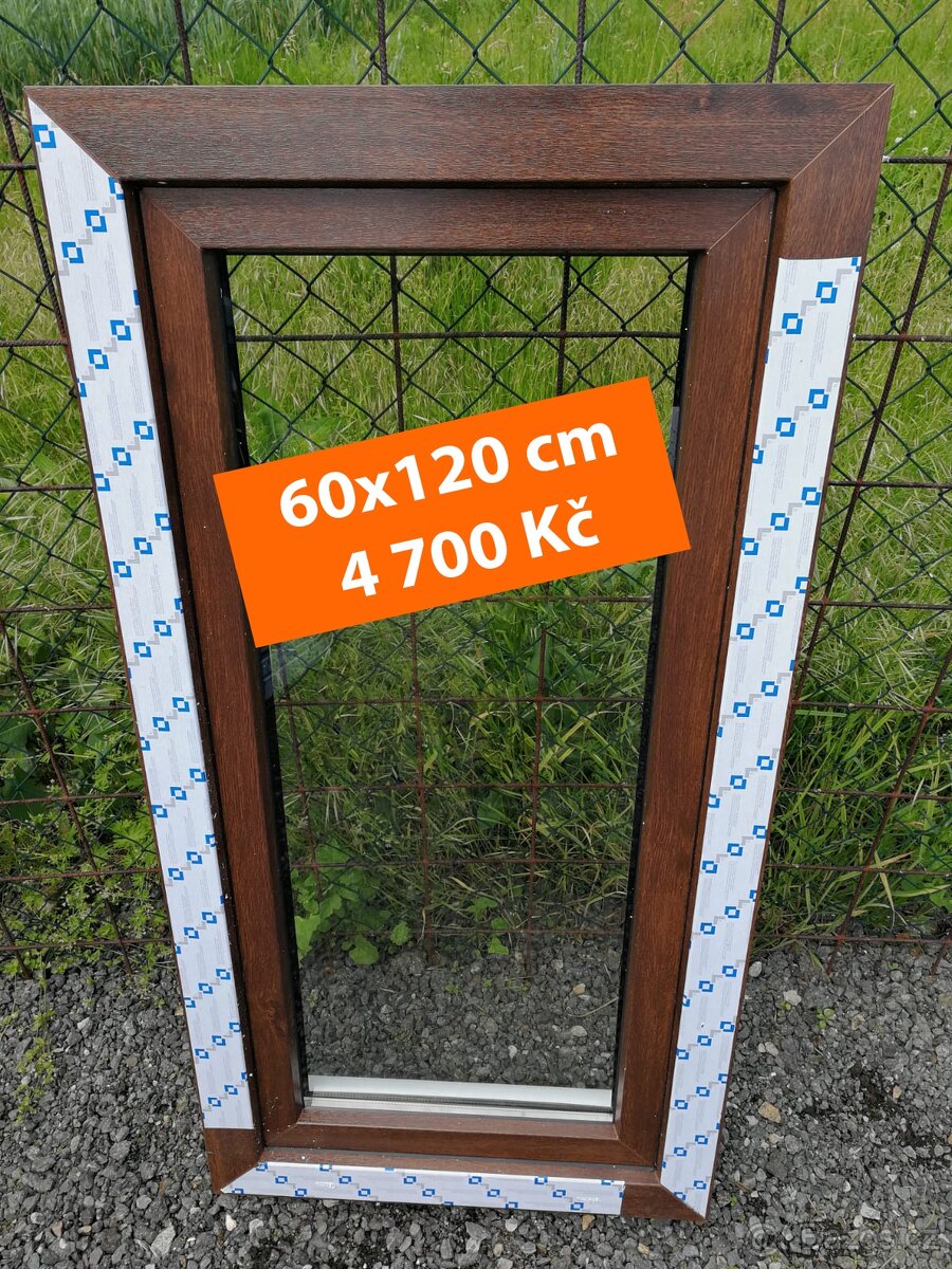 Dekor venku ořech / uvnitř bílé. Dvojité izolační sklo, jednokřídlé, otevírací a výklopné (větračka), mikroventilace. Jsou nové nepoužité, š-60 x v-120 cm + 3 cm spodní parapetová lišta. K oknu klika