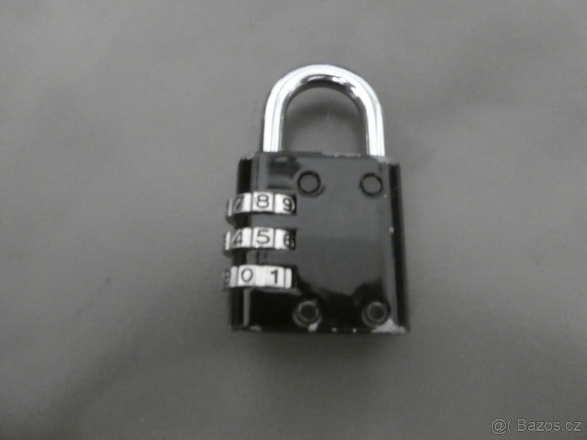 Prodám černý kovový visací zámek na tříčíselný kód. Cena 80,- Kč. Osobní předání po dohodě v Olomouci. Zaslat lze i přepravcem za 75,- Kč nebo 89,- Kč, dle výběru přepravce. Na dobírku nezasílám, zasílám obratem po úhradě ceny a přepravného na účet. Prosím neposílat sms.