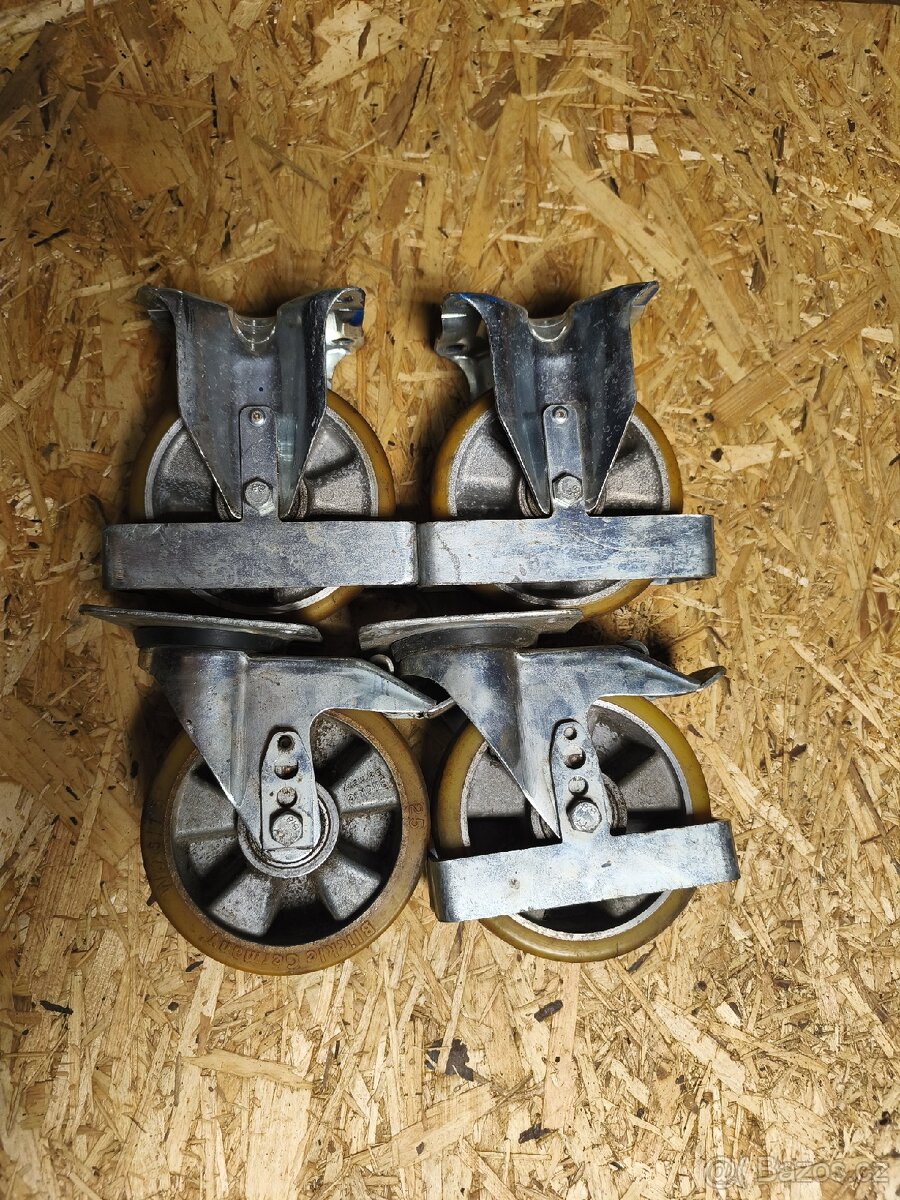 Průměr kolečka 16cm, nosnost 250kg/ks, dvouložisková, běhoun z tvrzeného nylonu( neznečišťuje podlahy),2 otočna s aretací, 2 stabilní, Torwegge Německo