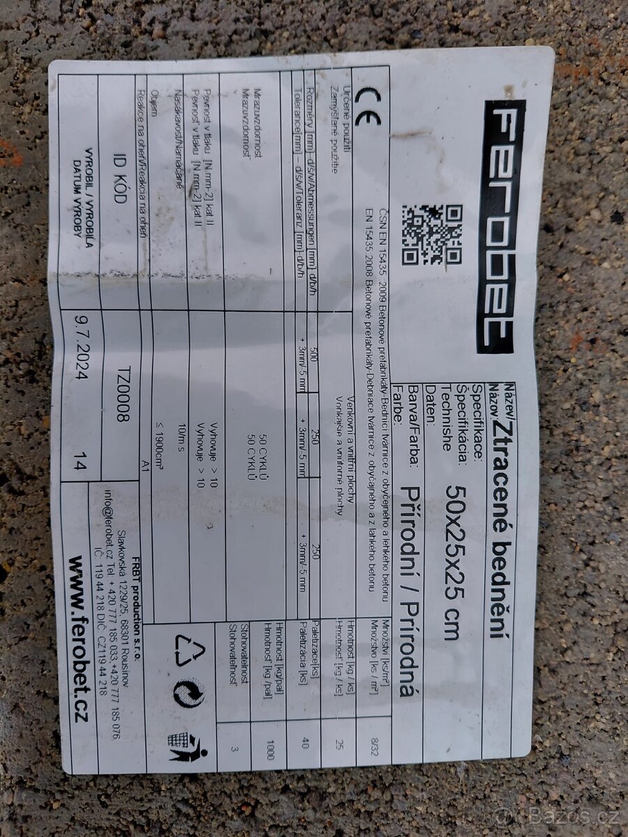 Ztracené Bednění CS - Beton - [14.2. 2026]Dobrý den, prodávám ztracené bednění od CS - Beton 400x500x250, 50ks.