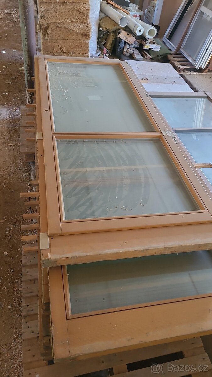 Euro rámu 68mm: 1ks otevíravé okno dvoukřídlé v. 178 x š. 173 cm za cenu 3.300 Kč, dále 1 ks pevné okno 265 x 147 dělené za cenu 3.000 Kč, 1 ks pevné okno 268 x 141 dělené za cenu 3.000 Kč.