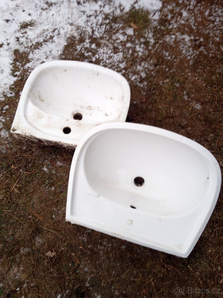 Prodám dvě staré umyvadla, možné prodat i jednotlivě, 1ks 200 Kč.
