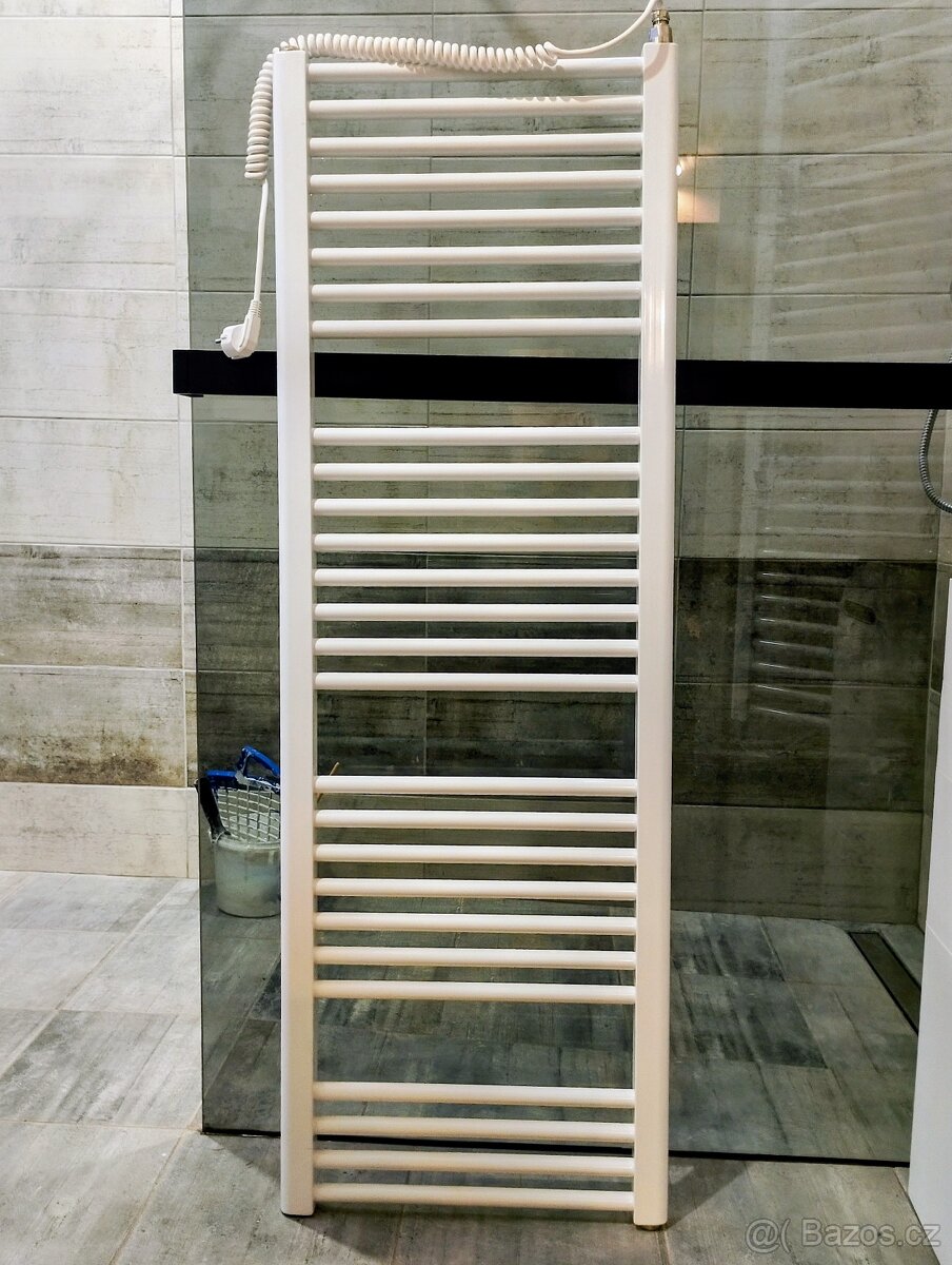 Prodám Elektrický topný žebřík do koupelny rovný KD-E 450x1320 400W, cca 10 dní v provozu (nevhodná velikost pro novou koupelnu). Sleva 50%