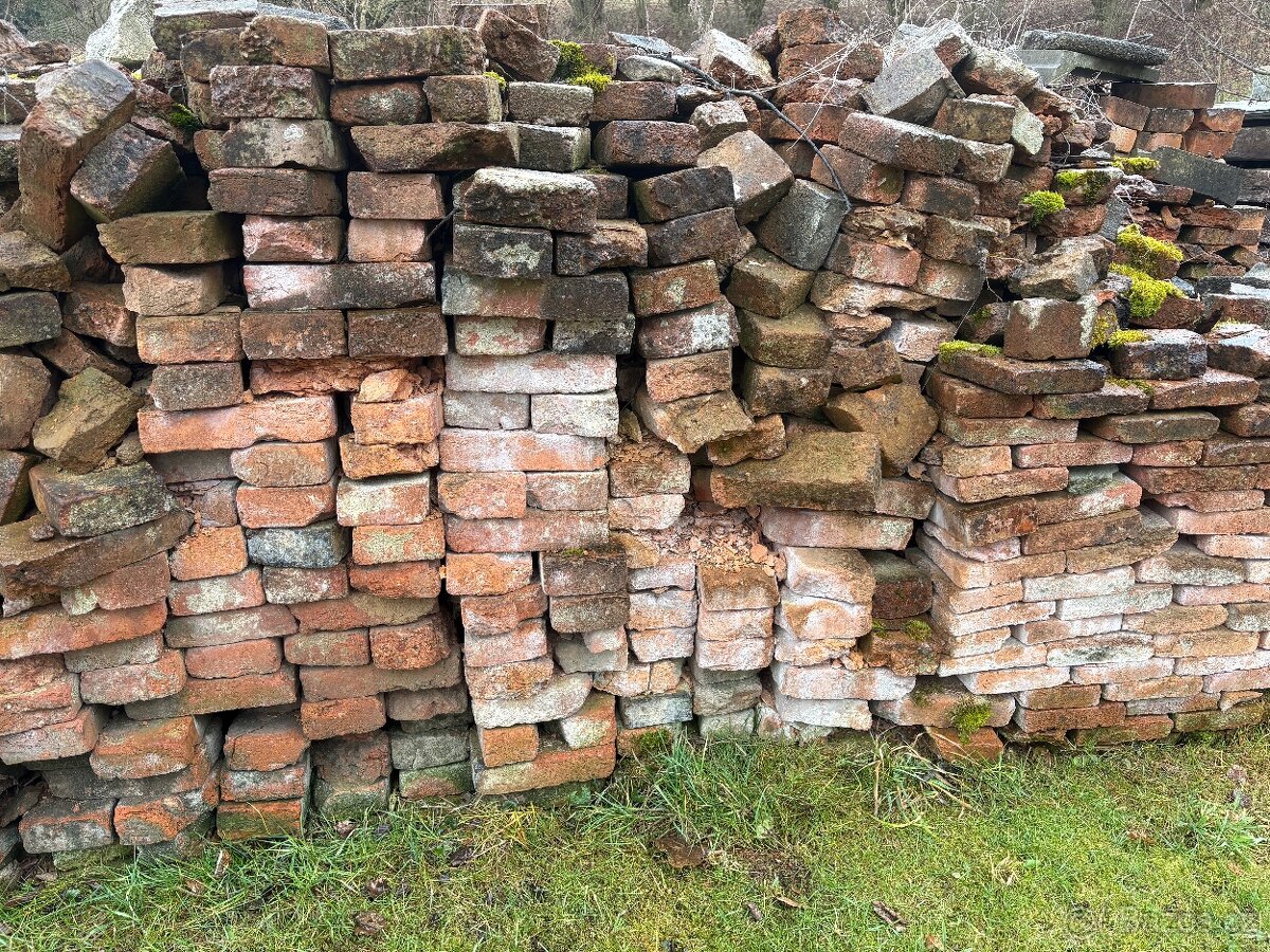 Srovnané na hromadě, stačí naložit. Symbolická cena plná cihla 1 Kč/ks