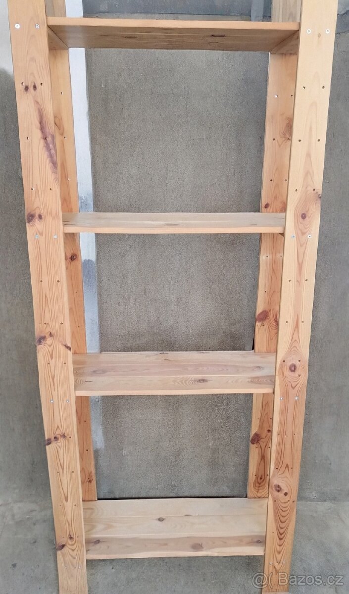 Prodám dřevěný regál IKEA - šířka 80cm, výška 174cm, hloubka 31cm. Čtyři police. Cena 444Kč.