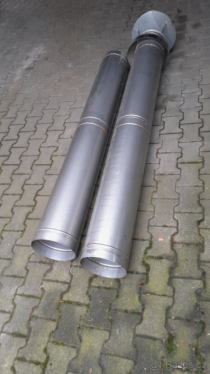 Prodám nerezový komín průměr 250 mm, délka 4 m. Včetně stříšky.
