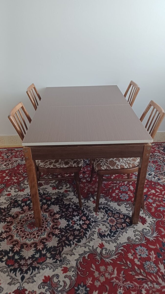 Prodám rozkládací stůl a čtyři židle. Na ceně se můžeme dohodnout.