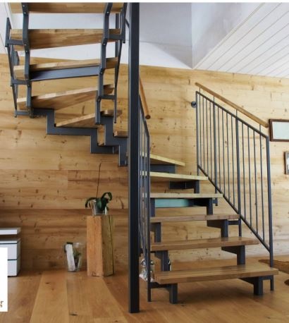 Nové ocelové levotočivé schody včetně montáže. Výška stupně 193 mm, počet schodů 14. Čistá výška patra 2700 mm (schody lze částečně upravit dle potřeby - jak výškově, tak i směr). Další rozměry viz přiložený plánek. Foto je ilustrační. Schody jsou bez zábradlí, je počítáno se středovou zdí a madlem na zeď po vnějším obvodu.