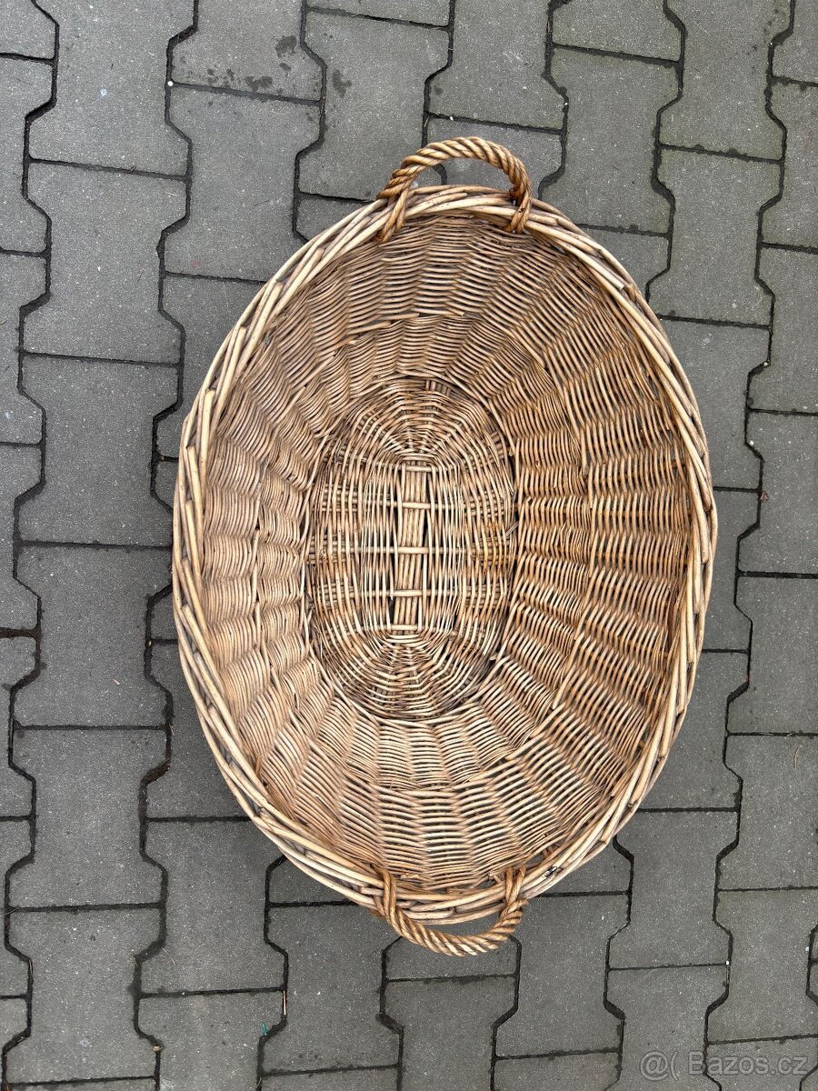 Prodám starý, pěkný a zachovalý proutěný koš. Dříve na prádlo. Rozměry 63x48x26cm.