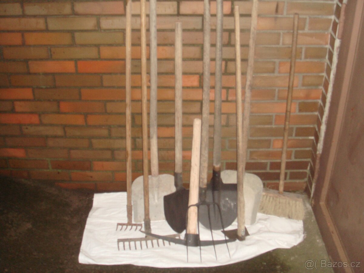 Prodám různé nářadí na stavbu a zahradu Cena700kč a kolečko 500kč prodám jako celek.