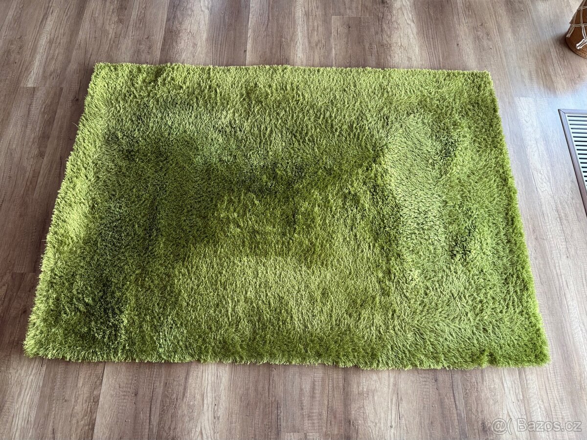 Prodám kusový zelený koberec. Vysávání možné i robotickými vysavači.
