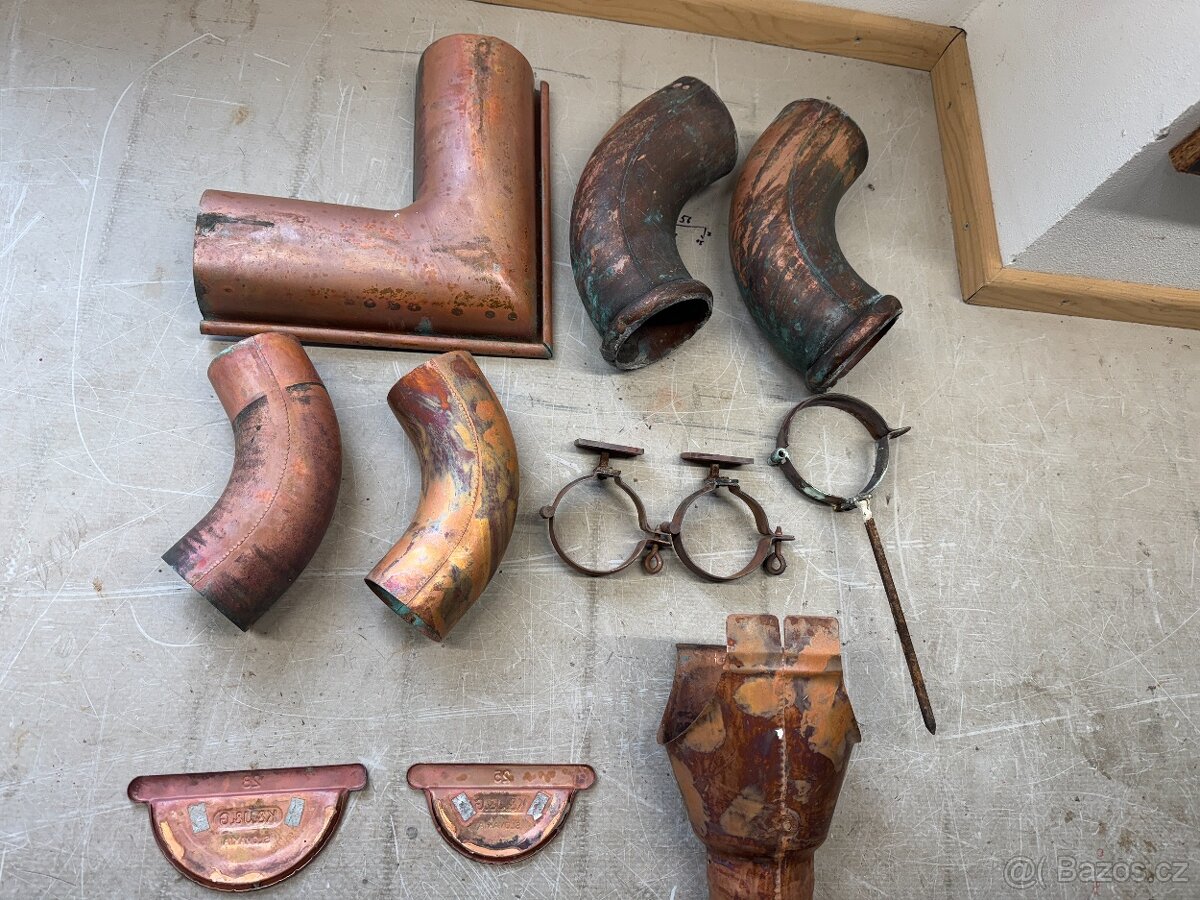 Měděné okapy - doplňky - použité vpořádku