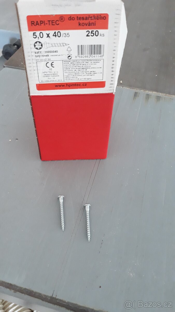 Prodám vruty do tesařského kování RAPITEC 5x40/35 v množství cca 7 000 ks. Cena za jeden kus 0,40 kč. Jedno balení má 250 ks , odběr po celých baleních.