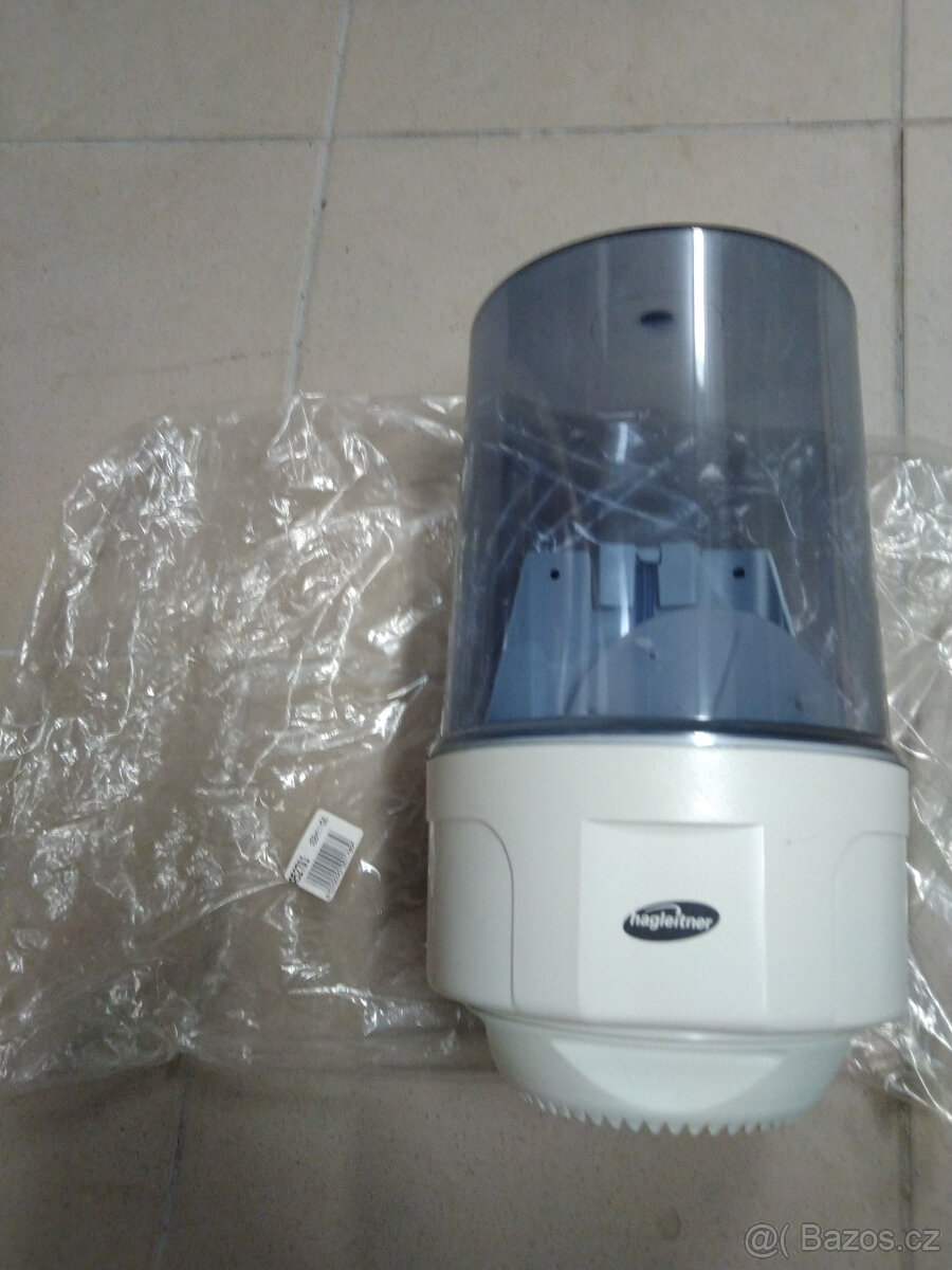 Praktický dávkovač rolí papíru z pevného plastu, odolného proti nárazu. Uzavíratelné víko z tónovaného plexiskla pro kontrolu stavu náplně, náplň je chráněna proti stříkající vodě.