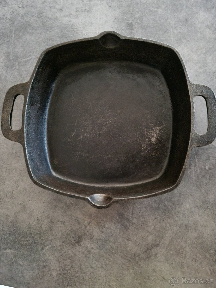 Prodám LITINOVÝ PEKÁČ 25 cm x 25 cm x 5,5 cm materiál: litina včetně madel-i na gril