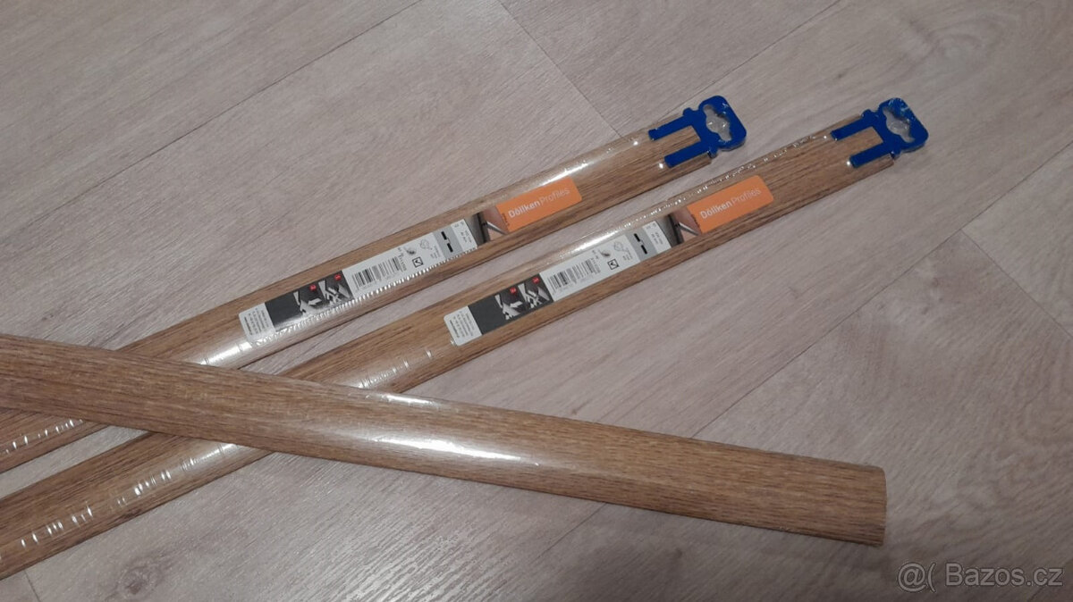 Prodám 3x samolepící, hliníkovou přechodovou lištu v barvě světlý dub – přesněji „COGNAC“, lépe je barva patrna na fotce z internetu. Nakoupil jsem je ve dvě barvy a na tyto jsem pak doma zapomněl a už je nemohu vrátit. Fotka z webu ukazuje ale plastovou verzi, je tady jen pro lepší znázornění barvy.