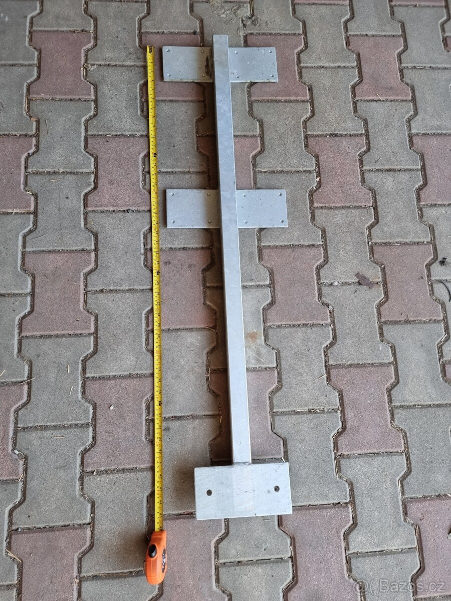 Nabízím 12ks pozinkovanych stojek původně na zábradlí balkonu, nakonec se změnil projekt tak zůstaly. Jsou bytelne , jekl je z 2mm plechu, privarene držáky z pásoviny 4mm tlusté. Přesné rozměry jsou v náčrtku, a 2 stojky šikmé viz foto. Pořizovací cena byla cca 20.000 bez DPH, nyní 150 za kus, slušné jednání podmínkou, pouze osobní odběr.