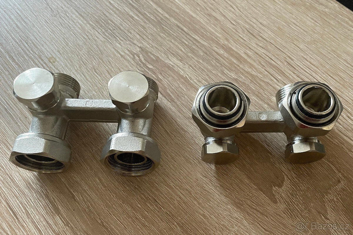 nabízím 2ks nepoužitých šroubení k radiátorům, jedno úhlové, jedno přímé. Závit na převlečných matkách 3/4, vnější závity jsou M24