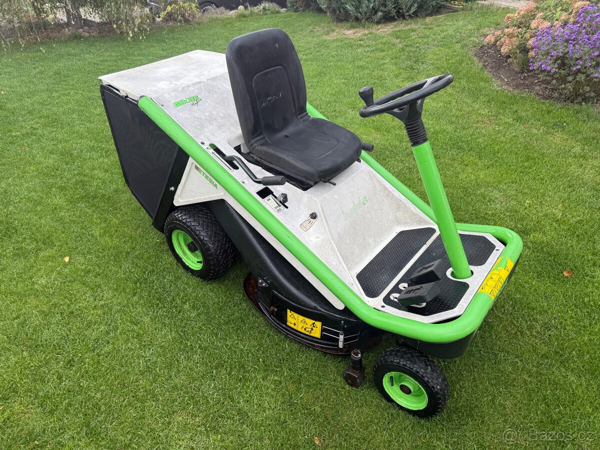 Etesia Bahia , motor Kawasaki 15Hp dvouválec, Hydrostat. Velmi obratný zahradní rieder s nejvýkonnějším dvouválcovým motorem. Asistenční antiskalpovaci kola sečení o šířce 85cm. Původní cena 150tis.