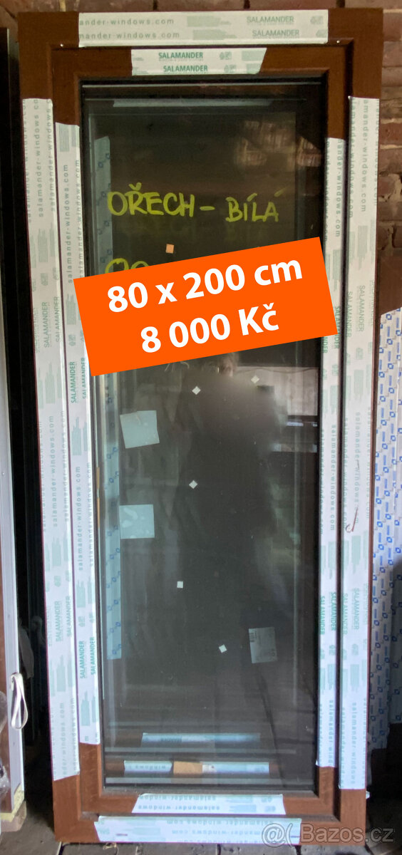 Balkonové okno 90x200 cm Ořech - [14.2. 2026]Balkonové okno - dekor venku ořech / uvnitř bílé. Dvojité izolační sklo, jednokřídlé, otevírací a výklopné (větračka), mikroventilace. Jsou nové nepoužité, š-90 x v-200 cm + 3 cm spodní parapetová lišta. K oknu klika