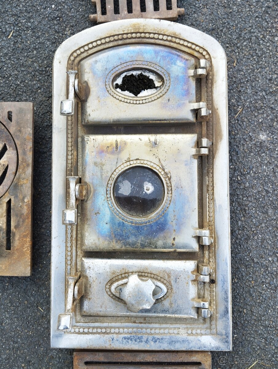 Prodám starožitná dvířka ke kamnům-kachlákům a rošty viz foto. Volejte Č.Těšín 773 534424,ne sms.