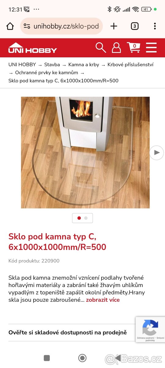 Prodám zcela nové nerozbalene sklo pod kamna typu C. Pořizovací cena 3400