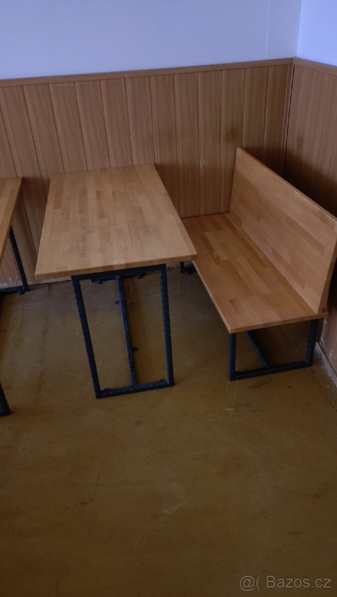 Prodám venkovní lavice a stůl, lakované, lepené. Vybavení kavárny, restaurace, gastro, nábytek do pergoly. Rozměry ve fotkách. Mám poslední set. Nohy vypadají jako kované, set se dá přišroubovat napevno k podlaze, nebo mu přišroubovat dřevěné nohy. Pořizovací cena jednoho setu 12.000,-.