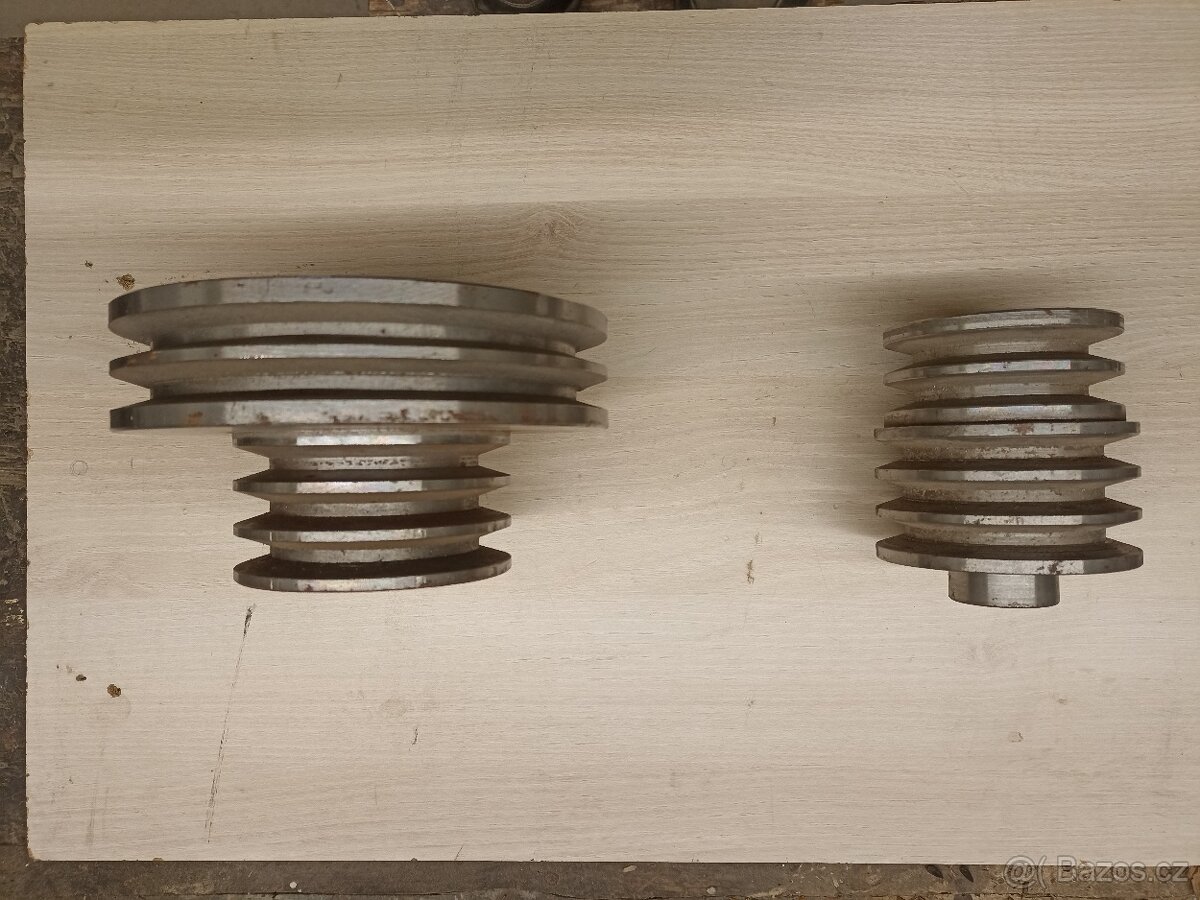 Prodám pár dvourychlostních klínových řemenic, třířadá/dvouřadá, řemen 12.