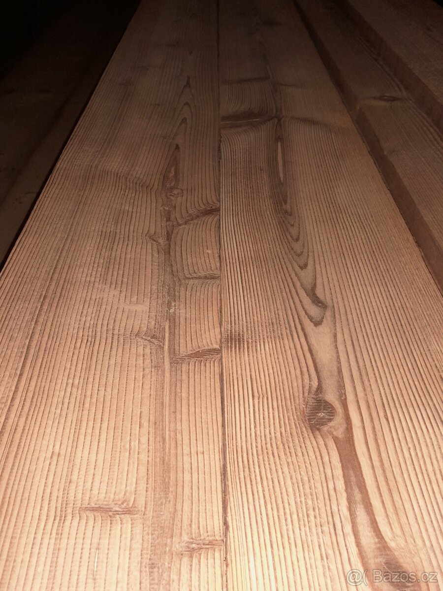 Prodám stará prkna z podlahy viz. foto - délka 3,95m/ šíře 13-25cm/ tloušťka +- 3cm. Prkna jsou kartáčovaná, 100% suchá, očištěná v pěkném stavu. Celkem na prodej až 65 m2. Cena za m2 = 850kč. Můžeme zajistit dopravu.