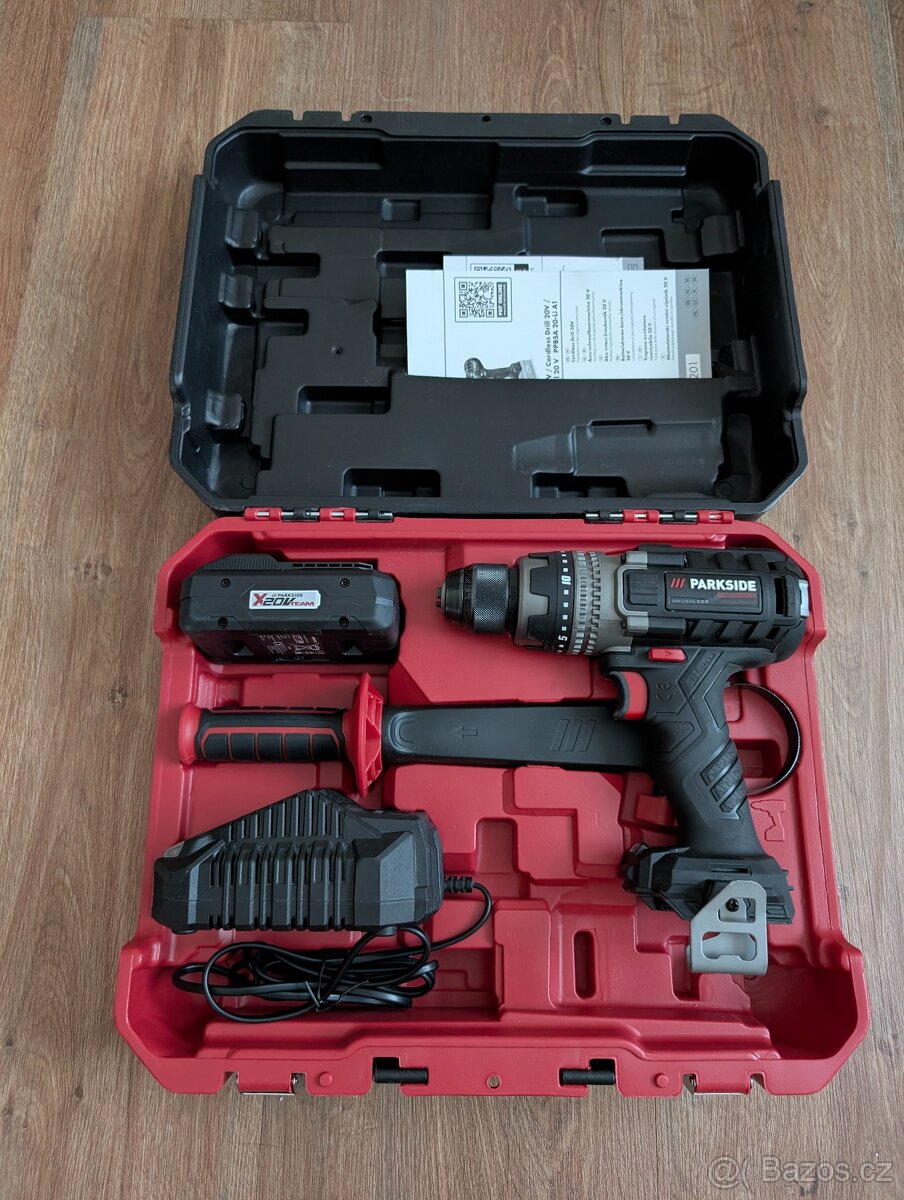 k tomu pevný kufr, aku vrtačku jsem dostal v roce 2024 na Vánoce, byla nevyužitá, za celou dobu jsem ji měl v rukách tak 5x, stav jako nová, baterie je úplně nová, dostal jsem teď nové parkside performance nářadí a dal jsem k vrtače novou baterii, je nepoužitá záruka 5 let.