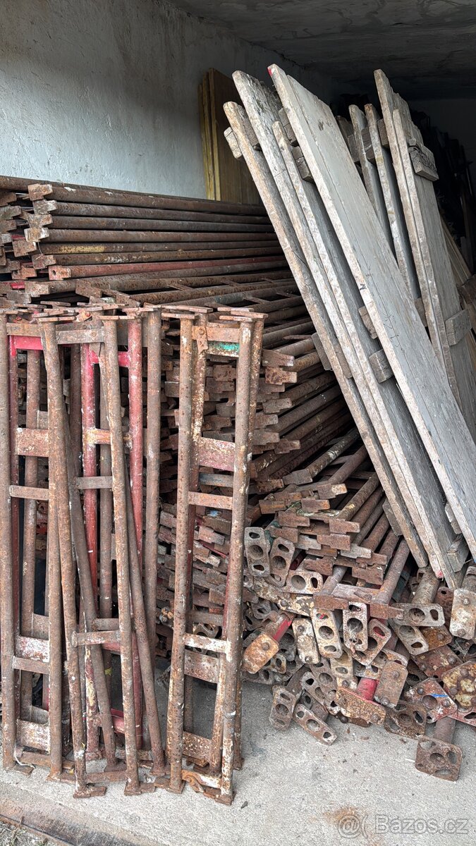 Podélník 3m 850kč/kus, podlážky 150kč/kus, samostatné stojky 1250kč/kus, zábradlí 3m 250kč/kus atd