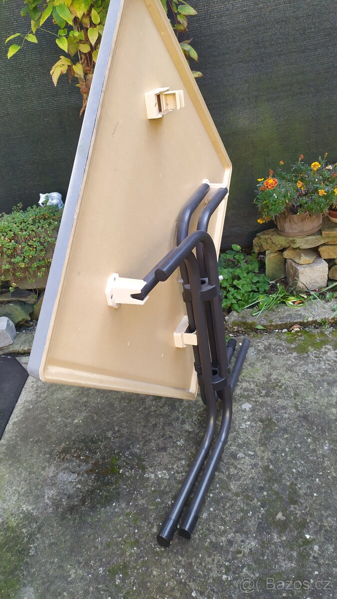 Nabízím zahradní stůl,deska materiál werzalit 80x80 cm,skládací,kovove nohy.Výška 70 cm.Zachovalý stav. Předání v Prostějově.