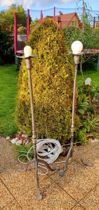 Prodám ručně kované stojací svítidla. Oba dva kusy jsou originály, se speciální povrchovou úpravou. Vytvořené na zakázku, pro soukromou akci. Prodávám dále z důvodu dalšího nevyužití.