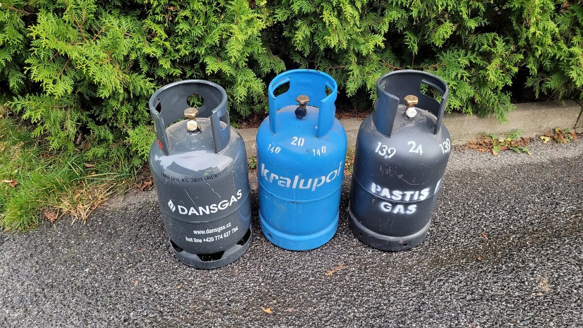 Tlaková láhev na Propan - butan 10 kg. Mám 3 cena za kus je 800kc. Všechny 2200kč