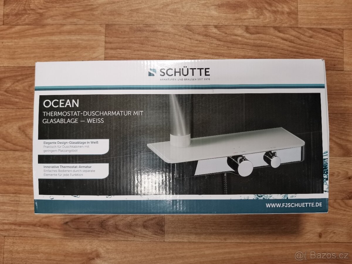 K prodeji nová, nikdy nenamontovaná termostatická baterie se skleněnou poličkou s roztečí 150mm.