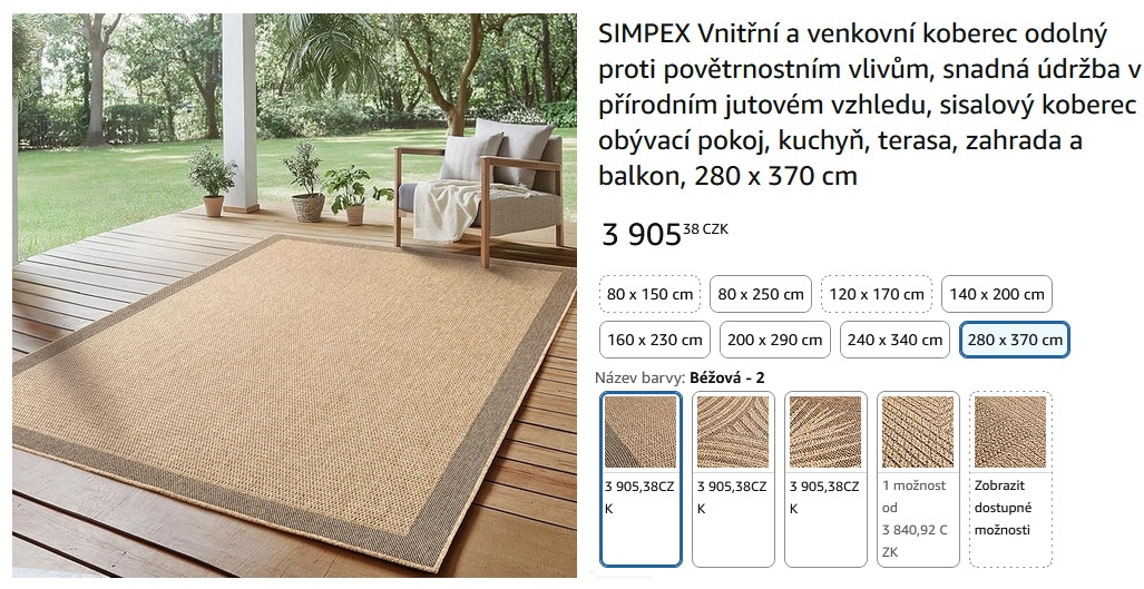 Venkovní koberec 280 x 370 cm - nový