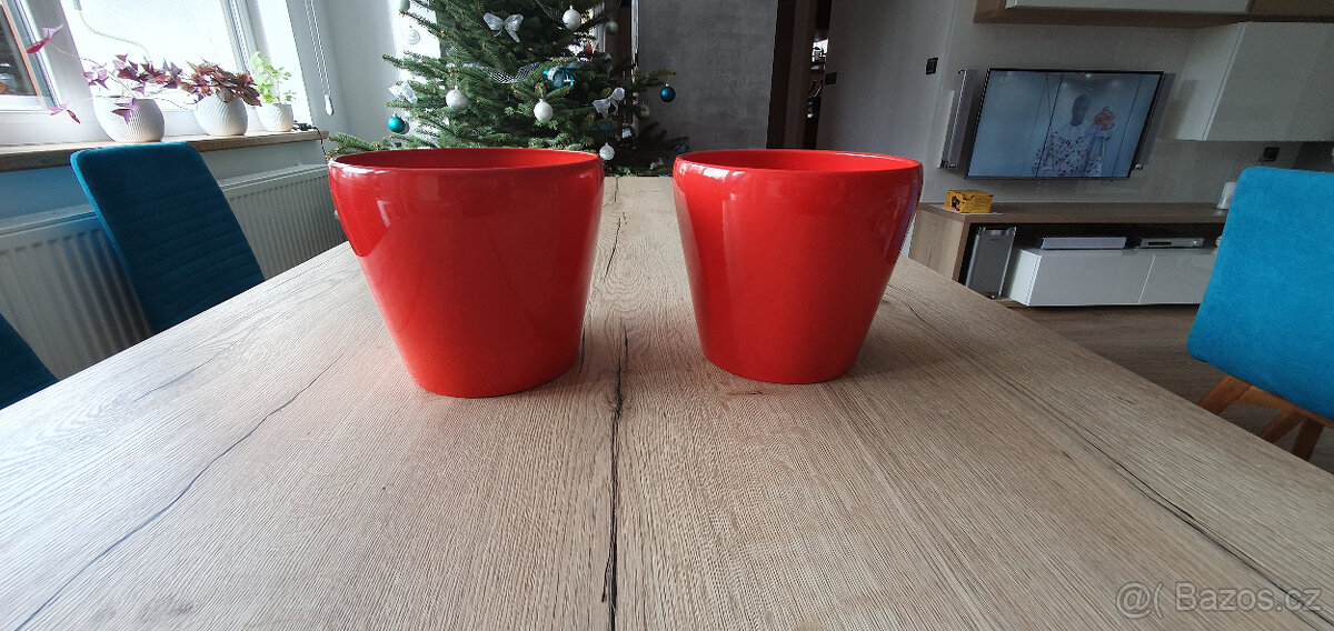 Prodám 2 červené keramické obaly na květináče o rozměrech dle obrázků.