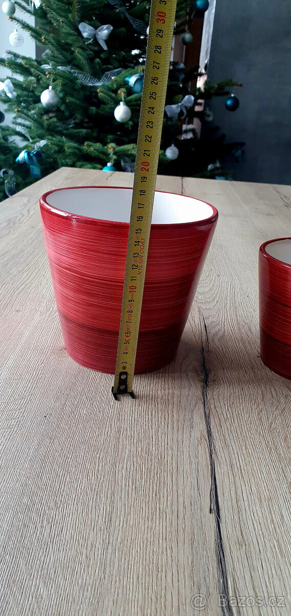 Prodám 2 keramické červené obaly na květináče o rozměrech dle obrázků.