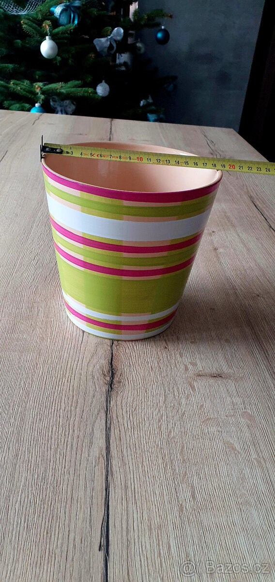 Prodám keramický zelenorůžový obal na květináč o rozměru dle obrázků.
