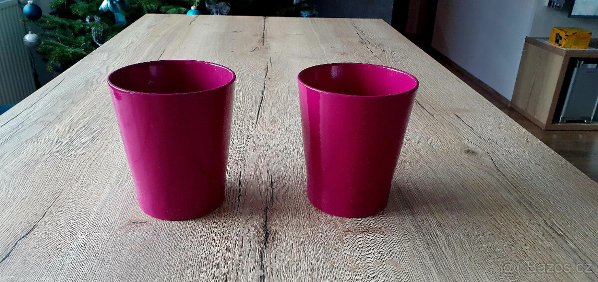 Prodám 2 keramické růžovofialové obaly na květináče na orchideje o rozměrech dle obrázků.