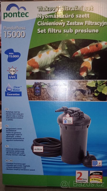 Prodám filtraci pro menší jezírka. První typ PondoPress 15 000, ideálně pro jezírko do 2 kubíků. Druhý typ filtrace BioSmart ideálně pro jezírko do 5 kubíků. Jedná se o novou technologii. V případě zájmu mohu dodat i technologii pro větší jezírko.