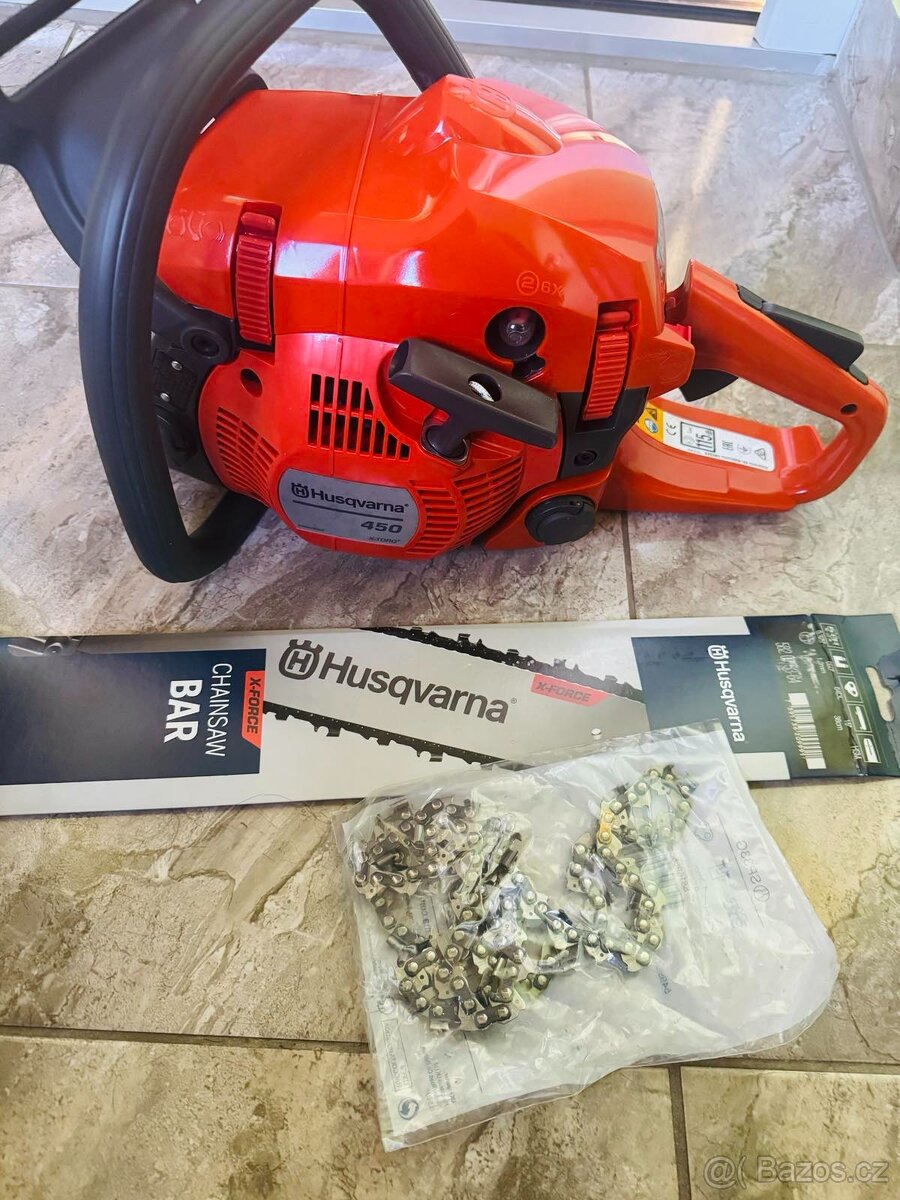 Prodám Husqvarna 450 II je ideální řetězová pila, pokud potřebujete lehkou univerzální pilu, která také nabízí vysoký výkon pro práce v lese. Je vybavena výkonným motorem X-Torq o objemu 50 ccm pro vysoký točivý moment. Vyklápěcí zátka palivové nádrže se snadno otevírá a zavírá is tlustými rukavicemi a technologie LowVib zajišťuje pohodlné používání.