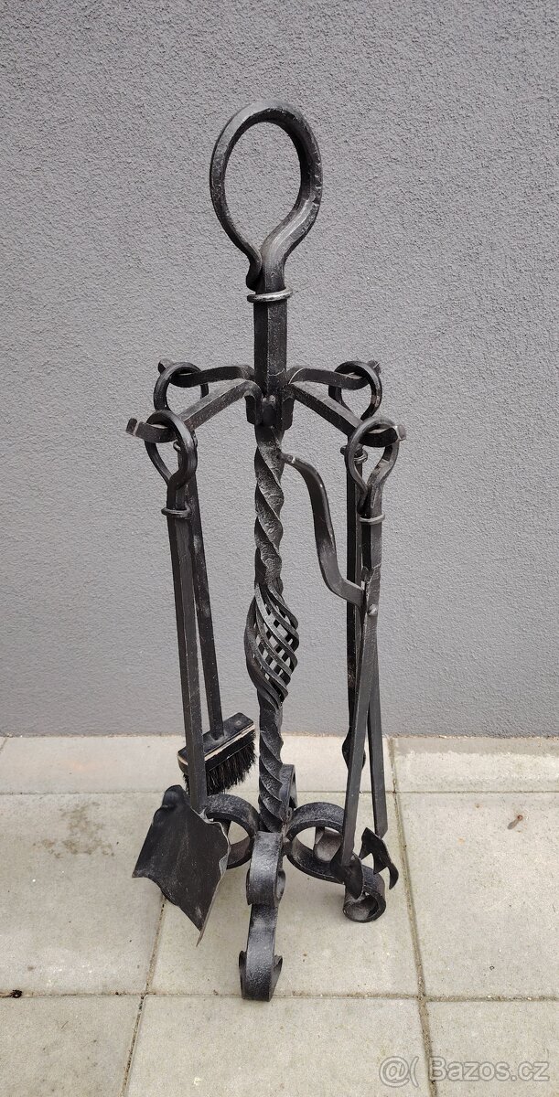 Prodám kované krbové nářadí.Viz foto.Ruční kovářská práce.Stojan.Lopatka,Smeták.Pohrabáč.Klešte.Cena 5900kč.Přelouč.
