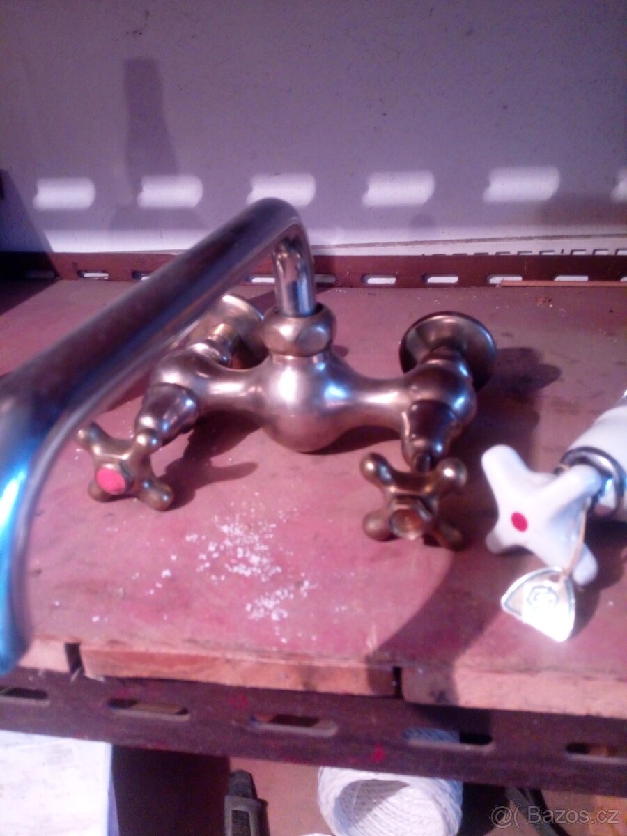 Prodám historické vodovodní baterie mosaz a keramika rok výroby asi 1930 vanová baterie cena 2000 kohoutky po 1000za kus viz foto mohu zaslat více foto při koupi všeho sleva